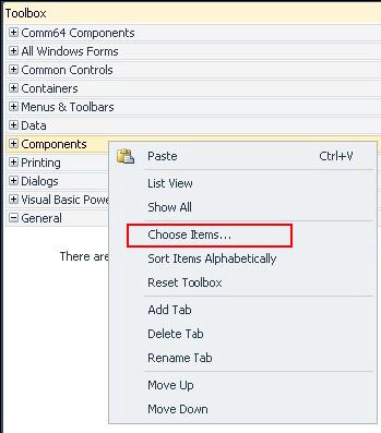 You now need to open your .net project and add the SComm64 component to the toolbox in the IDE.