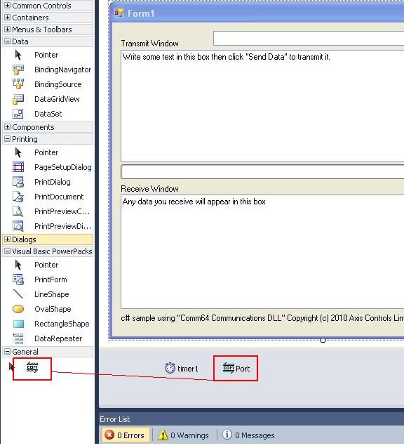 You can now use the component in your project. To start with you can double-click the component and that will create the OnComm event in your code window. You don't have to use OnComm but if you look at the source code of our sample projects you'll see that we use the OnComm event to create event driven applications.
